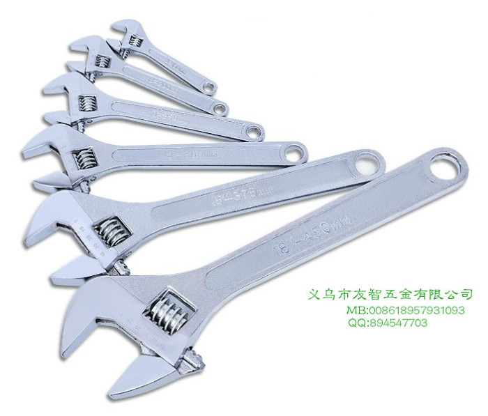 2020-06-30 yangtools 4 \"6\" 8 \"10\" 12 \"15\" 18 \"24\" forging chrome plated adjustable wrench 14166 4 \"6\" 8 \"10\" 12 \"15\" 18 \"24\" forging chrome plated adjustable wrench Yiwu Youzhi Hardware Co., Ltd. Main Products: Spanner, pliers, combination tools, screwdriver, tape measure, hammer, art knife, electrode holder, etc Can issue 16% invoice Contacts: Yang Cheng Mobile: 0086 13625792022 E-mail: deal@139.com WeChat: 0086 13625792022     Address: 19913, 5F, G2-International Trade Mart (District 2),Yiwu,China