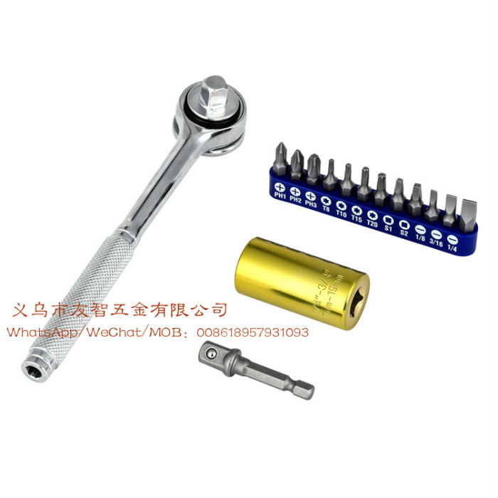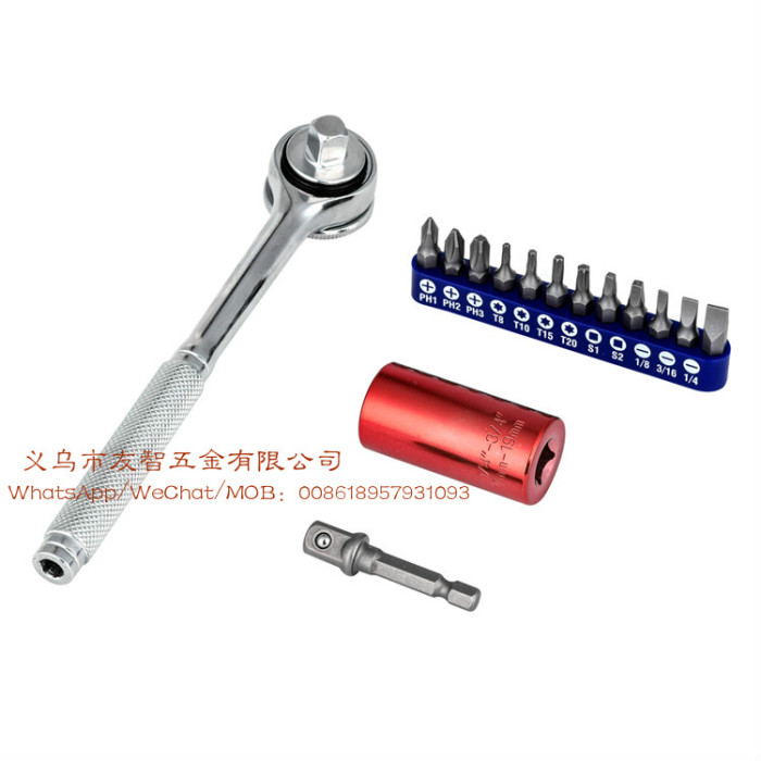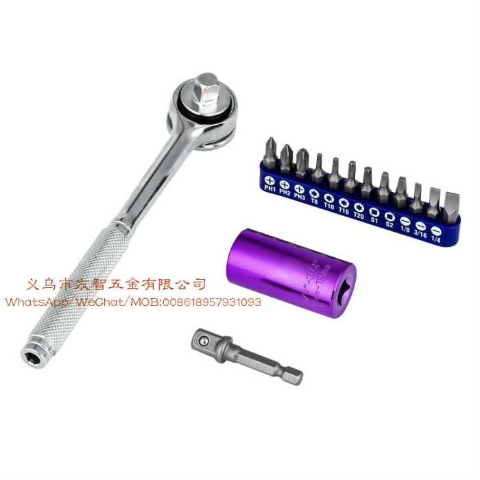15 piece set 3/8 inch 7-19mm color universal socket wrench: 3/8 \"multi-function ratchet wrench +3/8\" connecting rod +3/8 \"7-19mm universal sleeve +12pc batch head