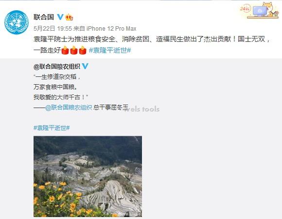 2021-05-22 yangtools “杂交水稻之父”袁隆平逝世 “杂交水稻之父”袁隆平逝世“杂交水稻之父”、“共和国勋章”获得者袁隆平,因多器官功能衰竭,于2021年5月22日13时07分在长沙逝世,享年91岁 Yiwu Youzhi Hardware Co., Ltd. Main Products: Spanner, pliers, combination tools, screwdriver, tape measure, hammer, art knife, electrode holder, etc Can issue 16% invoice Contacts: Yang Cheng Mobile: 0086 13625792022 E-mail: deal@139.com WeChat: 0086 13625792022     Address: 19913, 5F, G2-International Trade Mart (District 2),Yiwu,China
