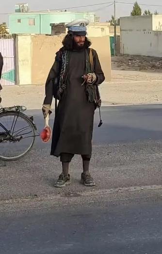 塔利班在喀布尔郊区指挥交通。受访人提供现在喀布尔的街上整体来说不乱,街上现在什么人都没有,警察也没有,普通民众也很少。就看今天晚上和明天晚上吧,近期会不会发生一些骚乱。之前听说塔利班没有进城,现在塔利班已经进城了,同时,在PoliceDistrict9(喀布尔行政区域)、PoliceDistrict1-15的公园里都已经出现塔利班了。